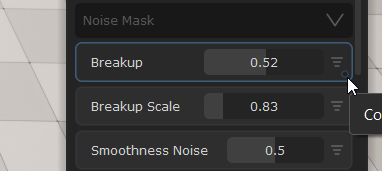 Before we dig in, "masking" here means removing scattered instances. Additionally, most masking groups give you the ability to invert the mask result. You'll notice that some properties have a small dark circle on their bottom right corner, which means you can right-click on the property and select **Invert Mask**.
